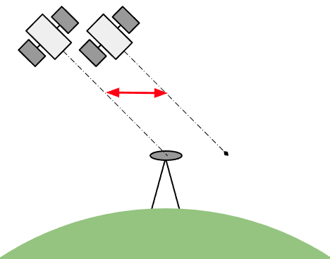 This then leads to a less accurate solution than if the satellites being utilised were well spaced, figure 3.